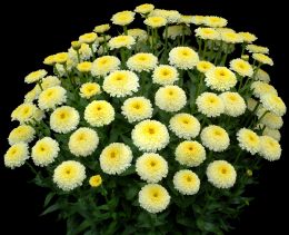 Pom-pom creamy yellow double flowers held atop strong flower stems will change to white as they mature. Use in borders, beds or containers. Height 50-80cm
