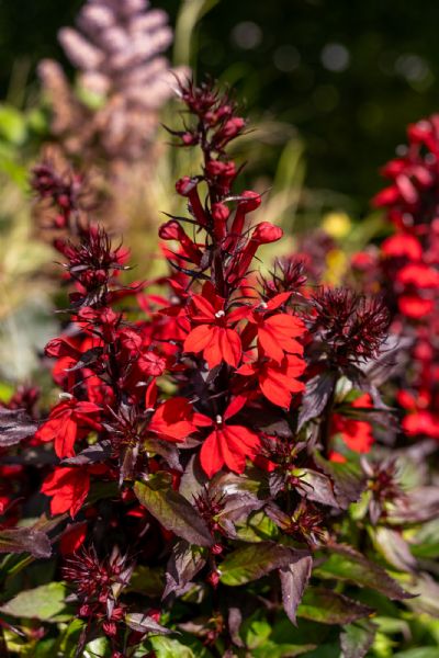 Bright scarlet flowers contrast beautifully against the bronze foliage. Habit is more compact than Fan Scarlet. Height 60cm